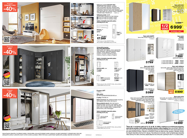 šatní skříně, postele, noční stolky, komody, matrace, rošty a toppery. Slevy se počítají z Běžných cen a lze je využít pouze u zboží, pro které byla stanovena klubová SCONTO cena. Akce platí pouze pro členy SCONTO Clubu. Členství ve SCONTO Clubu je zdarma a bez závazků. Členské výhody lze čerpat okamžitě, již při prvním nákupu. Nevztahuje se na služby, zboží označené jako Výprodej nebo Cenový hit. Slevu nemohou žádat zákazníci ke smlouvám uzavřeným dne 14. 10. 2025 a dříve.